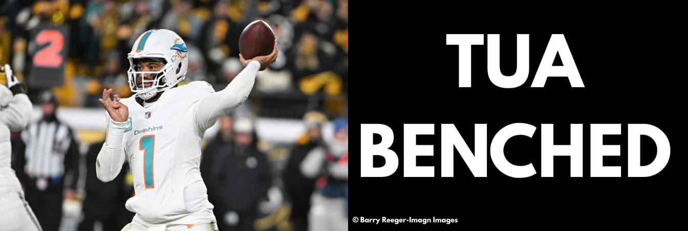 What’s Happening: Miami detonated its quarterback room. After five seasons as the franchise face, Tua Tagovailoa has been benched following a steep month-long regression, a league-high 15 INTs, and Monday’s elimination loss in Pittsburgh. Seventh-round rookie Quinn Ewers now gets the start. McDaniel’s shift is less about 2025 and more about 2026 cap triage, accountability, and a needed philosophical reset.