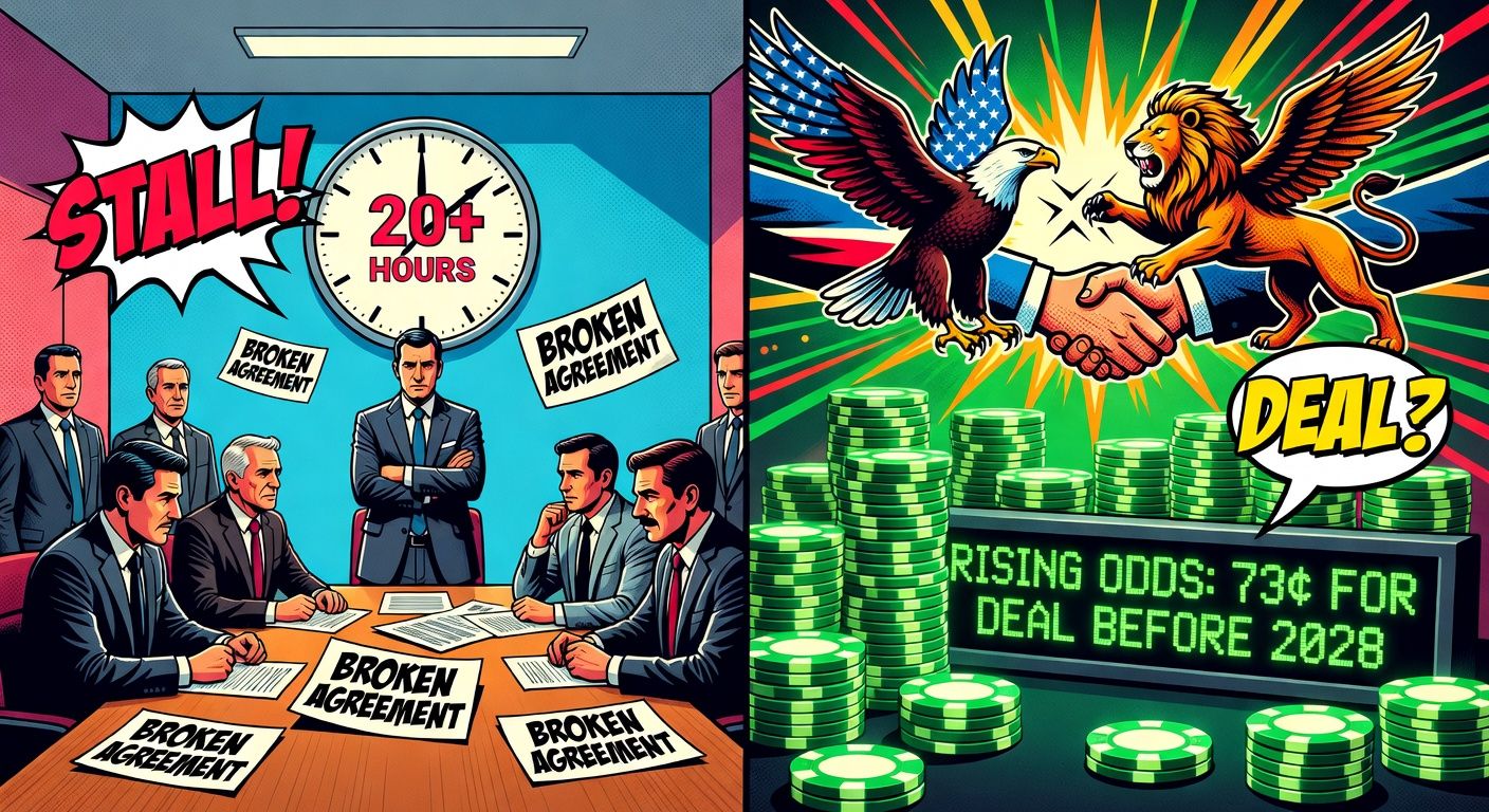 - Kalshi's contract on a US-Iran nuclear agreement before 2028 is trading around 73 cents, implying bettors see a deal as likely.